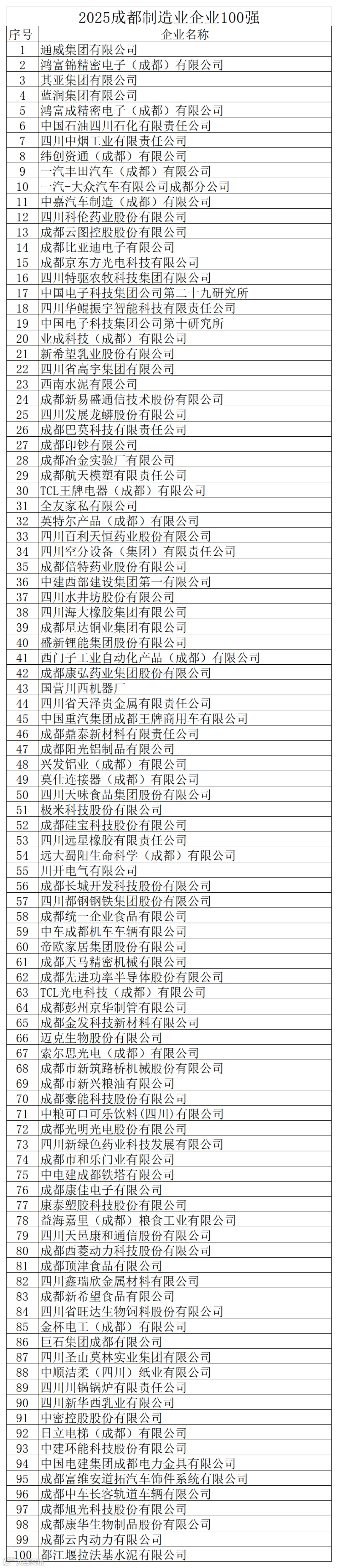 2025成都企业100强的亏损面从上年的11%(11家)大幅收窄至6%(6家),减少5家亏损企业,显示成都头部企业整体经营韧性显著增强。