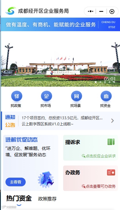 随后,成都经开数字城市运营管理有限公司工作人员推介“成都经开云上数字平台”小程序,现场代表纷纷掏出手机扫码体验。“找政策、找市场、找场景、找资金,一键提交需求,后台第一时间受理,不用只盯着企业专员了!”工作人员介绍,“100多项惠企政策都标好了申请条件和联系电话,‘龙泉造’汽车、食品、服饰等也会在此集中展示,你们的产品说不定就能被区外企业看中!”现场响起一阵细碎的按键声,不少企业代表已点开政策查询页面翻阅。