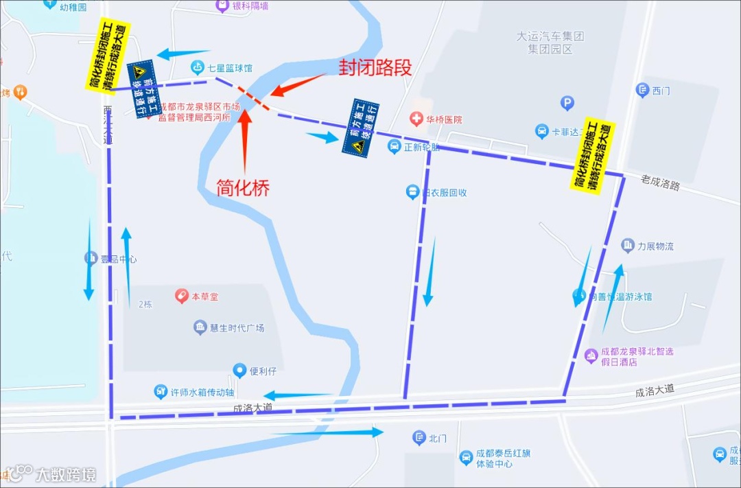 如遇成洛大道拥堵,可绕行线路: