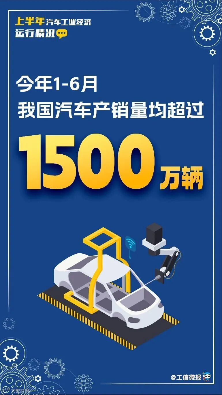 1—6月,汽车产销分别完成1562.1万辆和1565.3万辆,同比分别增长12.5%和11.4%。