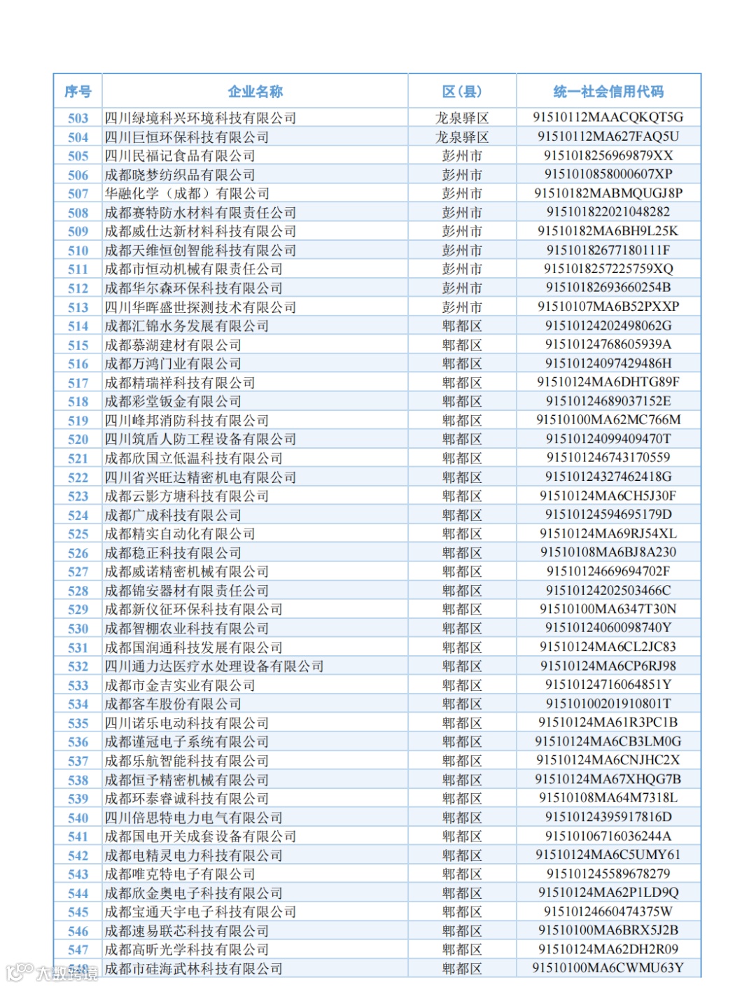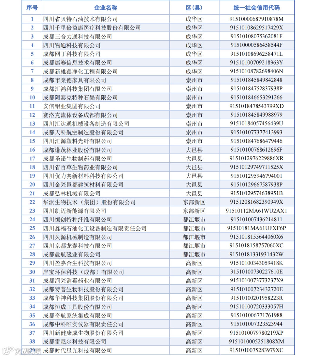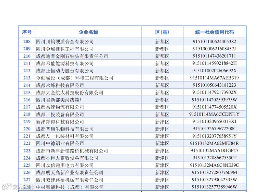 名单显示,成都府天高温材料科技有限公司、成都航天华涛汽车塑料饰件有限公司、通威农业发展有限公司等852家成都企业被新认定为2024年度四川省专精特新中小企业,四川省贝特石油技术有限公司、成都晨航磁业有限公司、成都摩尔环宇测试技术有限公司等228家企业今年期满复核通过。