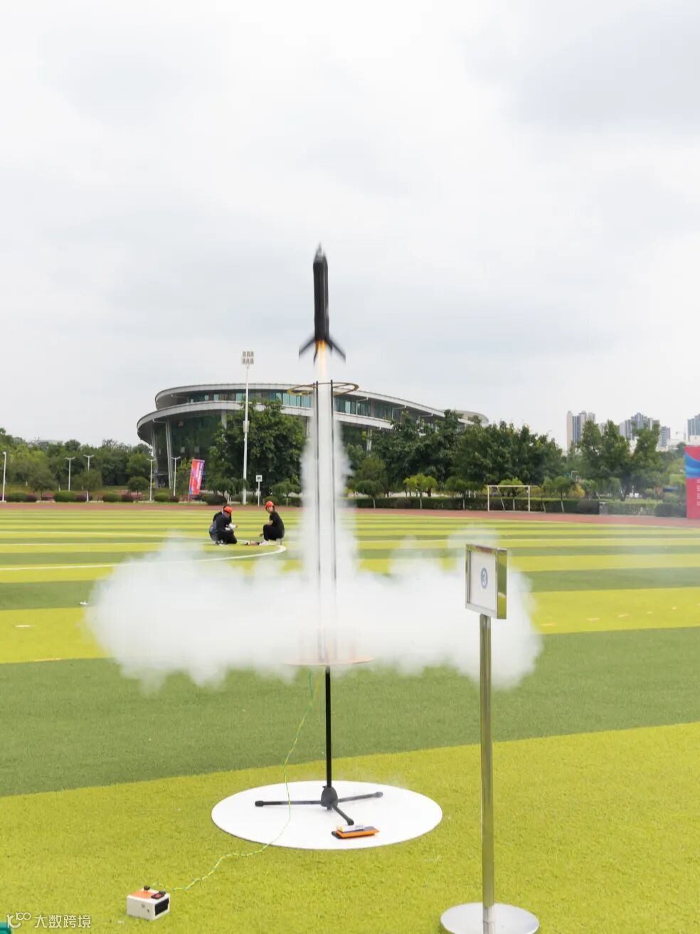 当天上午10时许,各项比赛正式开始。在成都航空职业技术学院足球场上,裁判员倒计时口令下达完毕,一枚枚模型火箭点火升空,白色尾焰划破蔚蓝天空。“正在进行的是航天火箭发射与返回项目的比赛,主要考验的是选手们制作的火箭起飞后的分离高度和着陆位置的准确度。”现场一名裁判员介绍道。