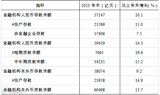 表6:2023年末全部金融机构存贷款余额及其增长速度