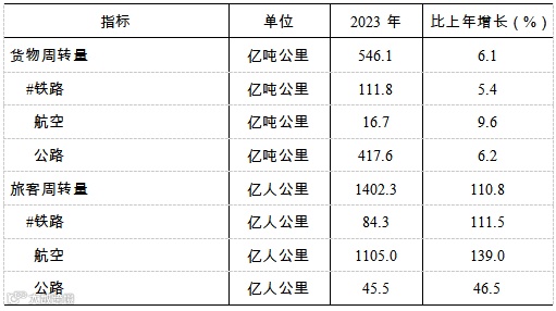 表5:2023年交通运输量及其增长速度