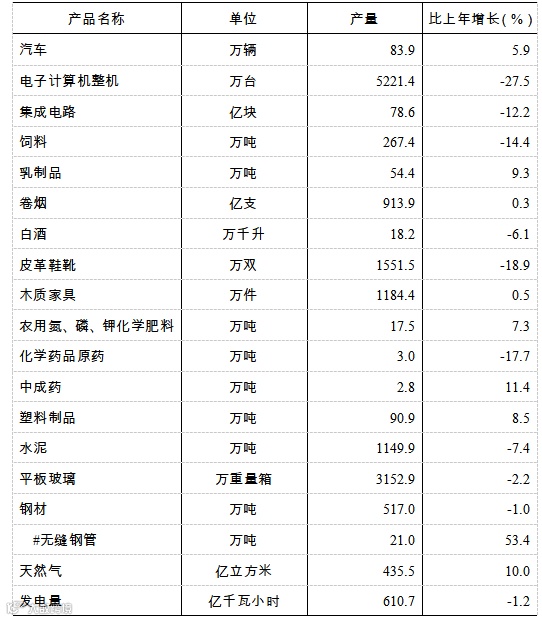 表3:2023年主要工业产品产量及其增长速度