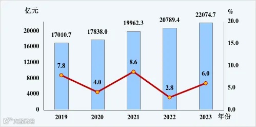 [2]公报中地区生产总值、各产业增加值绝对数按当年价格计算,增长速度按可比价格计算。2019—2022年地区生产总值为年度最终核实数据,2023年地区生产总值为初步核算数据。