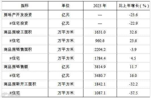 全年房地产开发投资比上年下降23.6%。商品房销售面积2204.2万平方米,下降3.9%,其中住宅销售面积1784.4万平方米,增长4.5%。商品房销售额3814.9亿元,增长11.7%,其中住宅销售额3480.7亿元,增长16.0%。