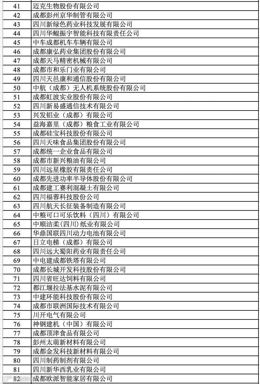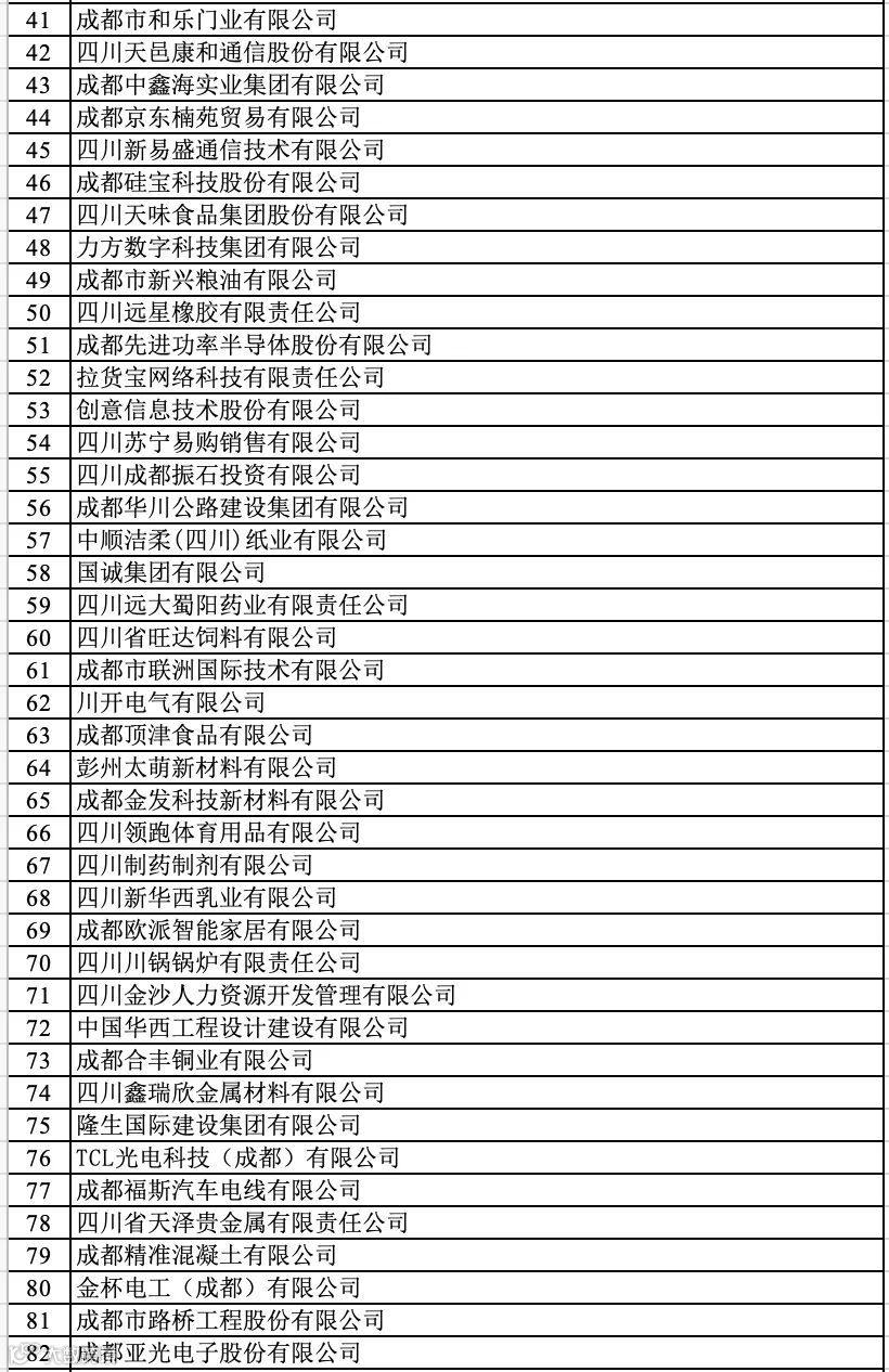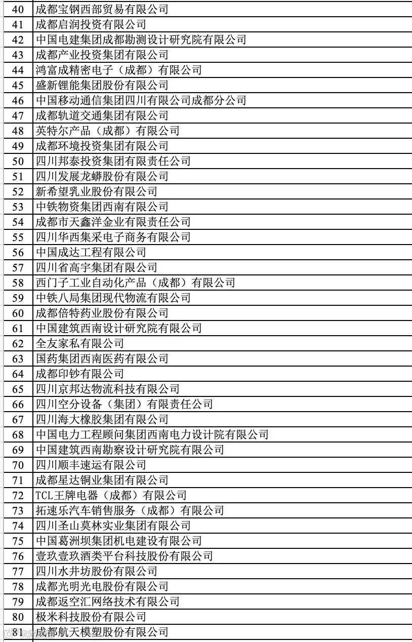 成都企业100强榜单