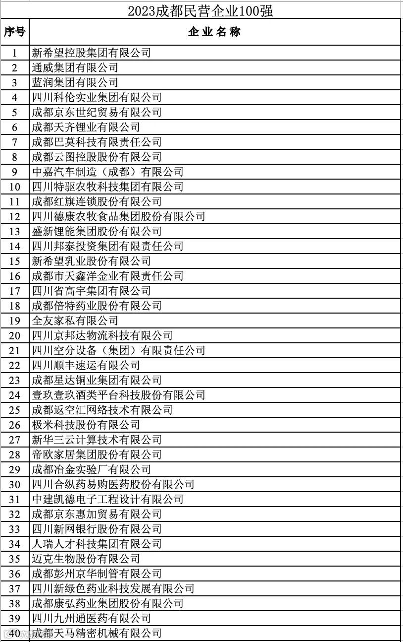 2023成都民营企业100强