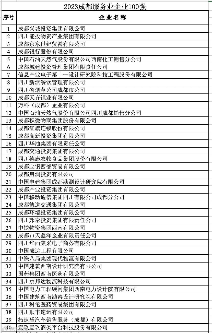 2023成都服务业企业100强
