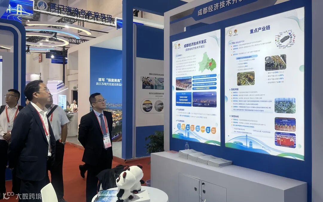 成都经开区以园区概况、八条产业链、六大功能片区、对外开放平台四个板块向来宾介绍。成都市龙泉驿区人民政府区长周健率队对成都经开区展台、成都经开区内企业秦川物联网等企业展台进行巡视。布展期间共对接有效项目信息近10个。