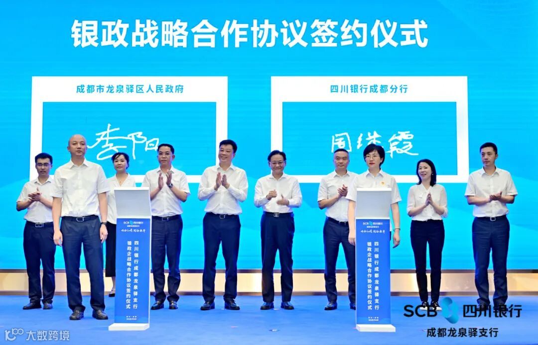 7月20日,龙泉驿区与四川银行成都分行银政企战略合作签约仪式举行,龙泉驿区人民政府、7家重点企业与四川银行成都分行签订战略合作协议,共同开启合作新征程。当天,四川银行成都龙泉驿支行正式揭牌。四川银行党委副书记、行长郑晔,四川银行副行长,成都分行党委书记、行长杨朝晖,龙泉驿区委书记、成都经开区党工委书记邱向东,龙泉驿区人民政府区长、成都经开区管委会主任周健出席仪式。