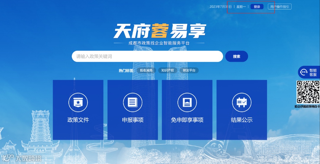 百度搜索“天府蓉易享”或者输入网址(https://tfryx.tfryb.com/),进入界面。点击右上角“登录”按钮。
