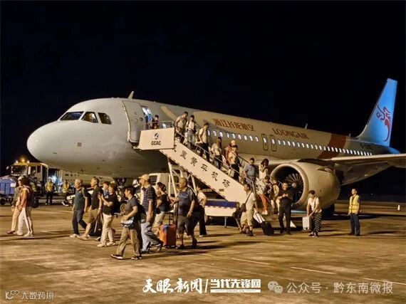 9月3日20:55,随着从杭州飞来的长龙航空“空客320”贵州“村钓”航班缓缓降落凯里黄平机场,143名长三角地区乘客一下飞机就被黔东南的自然风光、民族风情所吸引,来自杭州的徐家乐早就听闻黔东南“好好玩”,对接下来黔东南的“133”玩法更是充满期待。