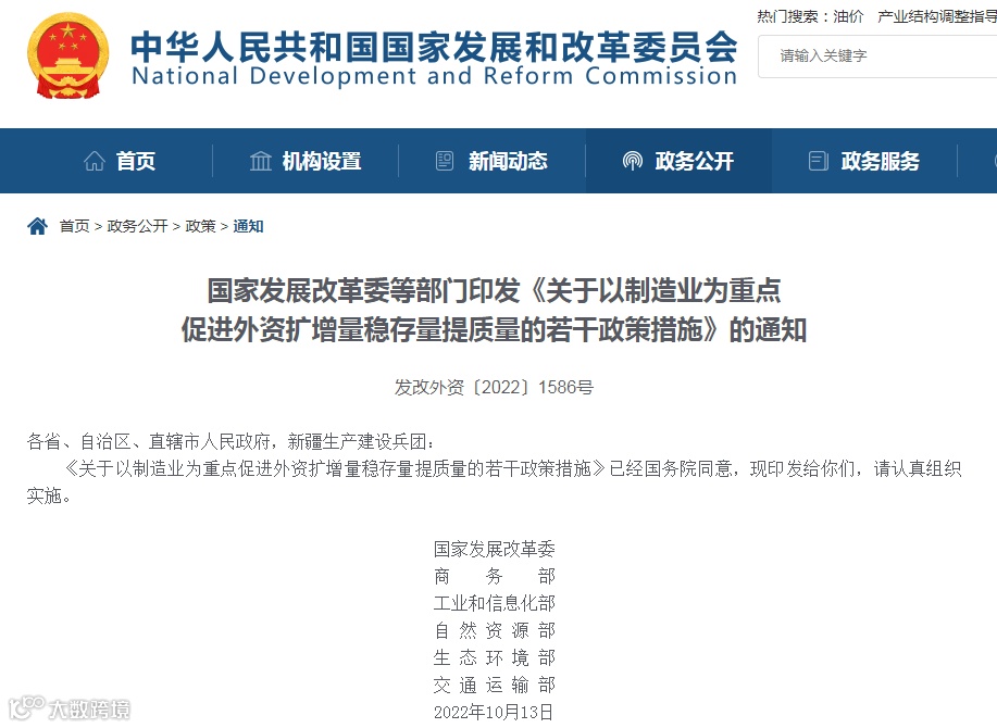 近日,经国务院同意,国家发展改革委、商务部、工业和信息化部、自然资源部、生态环境部、交通运输部联合印发了《关于以制造业为重点促进外资扩增量稳存量提质量的若干政策措施》(以下简称《若干政策措施》),进一步加大制造业引资力度,着力解决外商投资企业面临的突出问题,全面加强外商投资促进和服务,推动利用外资高质量发展。