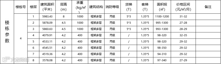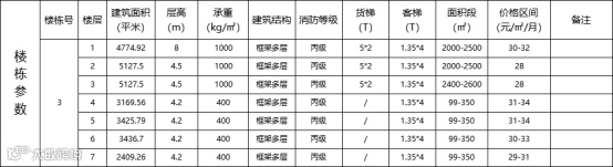 优势:多层框架结构,1-3层为生产型用房层高8米,4-8层为研发办公用房,户型方正实用,大小可自由组合,采光通透自然,整栋楼丙级消防,配置5T货梯三部,1.35吨客货梯5部。