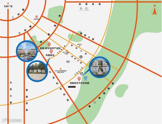 园区位于成都龙泉经开区经开南四路以北,文柏大道以东,地处龙泉驿区西南,成都经开区核心区域,紧邻吉利高原汽车、沃尔沃成都工厂、吉利BMA项目等。距龙泉驿区城区7.5公里,距龙泉山脉2公里,是成都“东进”的重要门户区域。