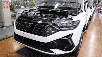 汽车生产车间里 一片繁忙的景象