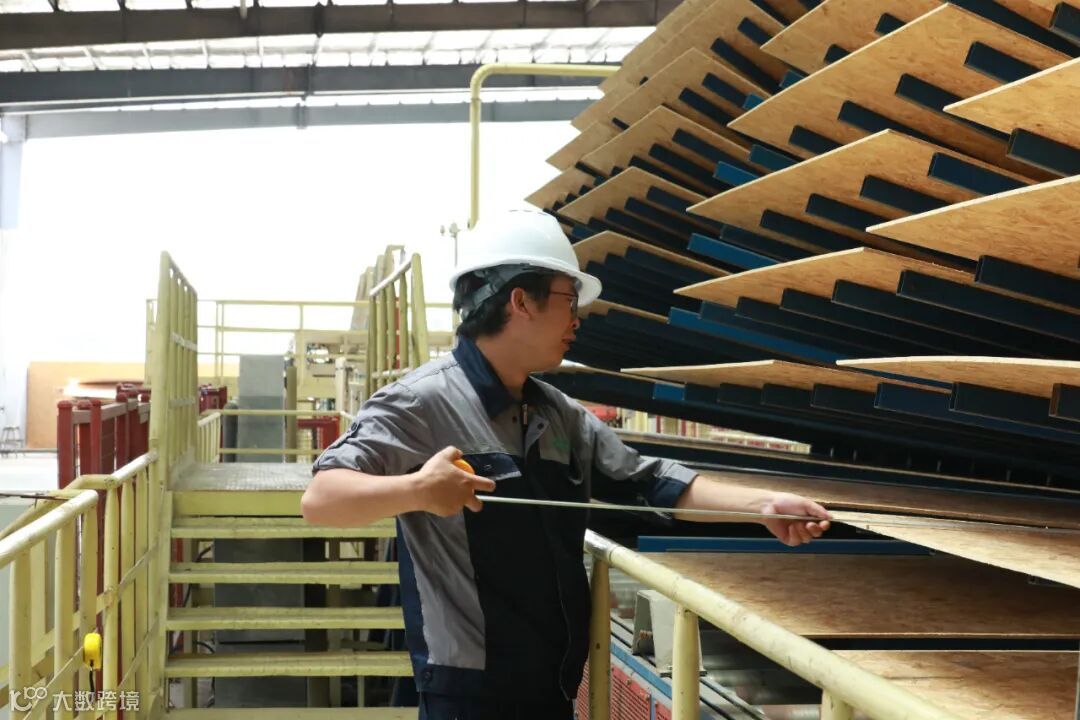 “我们在控制室里,可以对板材生产的全过程进行跟踪。比如刨花的用量、湿度、压板速度、板材厚度等,我们的操作人员都可以监测得到,同时,生产线上还用超声波、编码器、人工二次抽检等方式检测板材的质量和规格,保障每一批产品品质。”剑河县天生祥木材智能制造有限公司OSB生产总监余泽文介绍,目前,企业引进的是德国迪芬巴赫0SB生产线、林克生产线等国际领先设备,构建了智能化生产体系,将原木到板材的木材加工时间从传统的2-3个月缩短至四个半小时,大幅缩短了加工时间,智能高效。