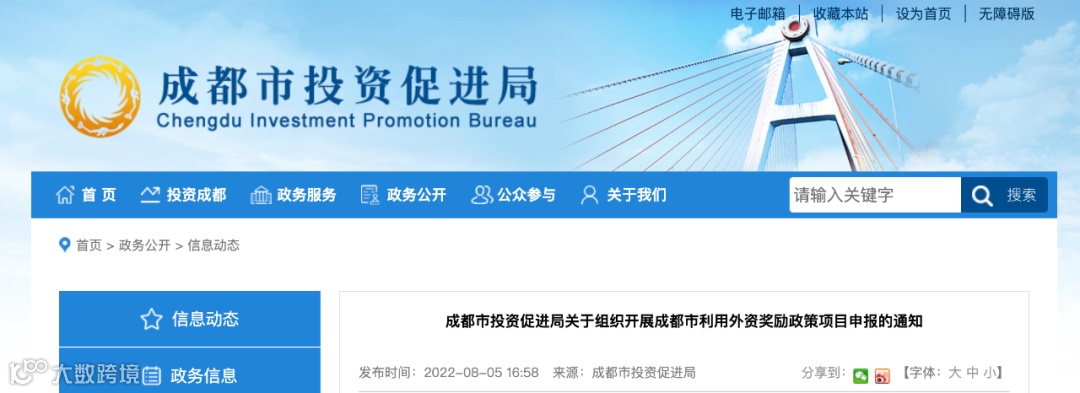 成都市2022年利用外资奖励政策