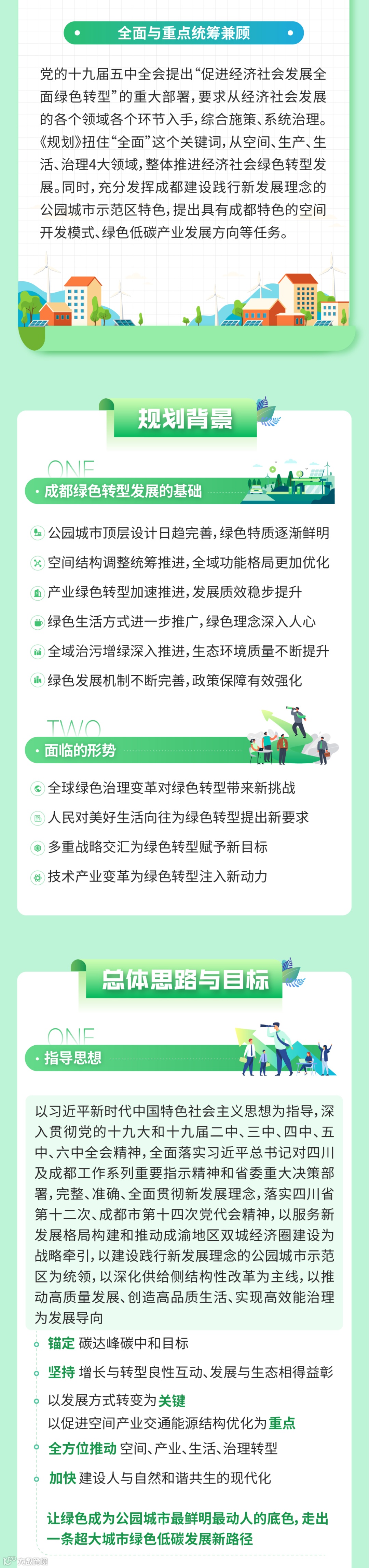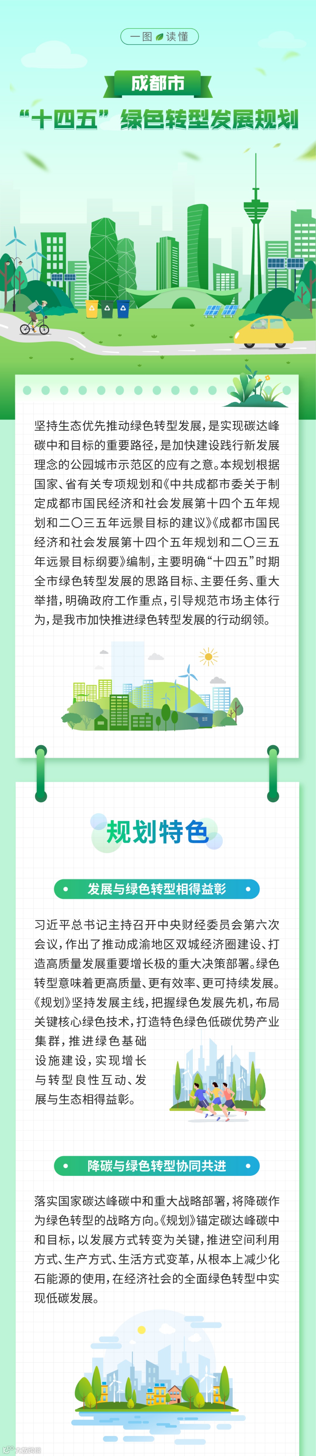 近日,成都正式印发《成都市“十四五”绿色转型发展规划》(以下简称《规划》)。《规划》提出,“十四五”期间,成都将全方位推动空间、产业、生活、治理转型,努力建设践行新发展理念的公园城市示范区;到2035年,实现超大城市全面绿色低碳发展。