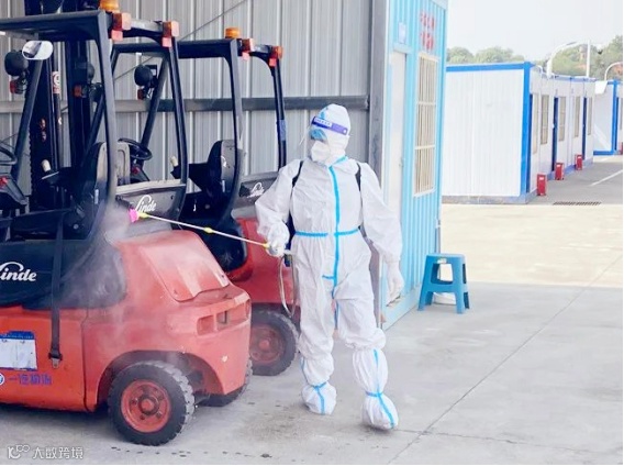 工作人员对物流车辆进行消杀
