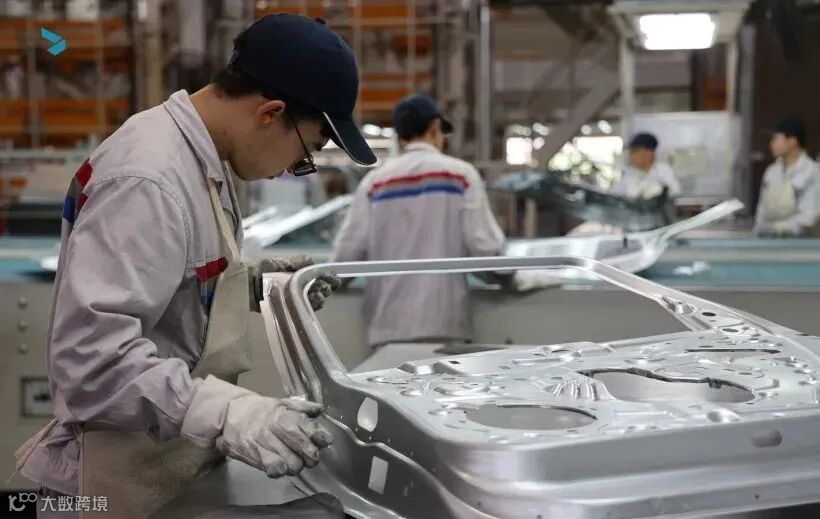 在冲压车间可以看到,一下线的车门就有模有样,这得益于整体冲压成型工艺。