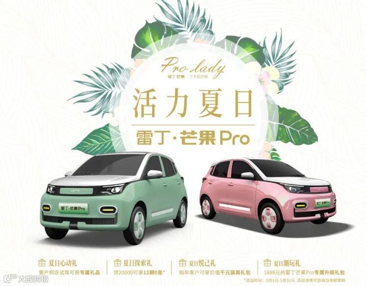 雷丁芒果颇具精致感和灵动感的设计搭配糖果配色令其在视觉效果非常亮眼。黑色车顶在降低视觉高度的基础上也能在一定程度上提高档次感。