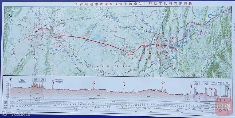 ↑成渝中线高铁线路图