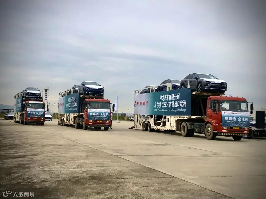 3月2日,一辆辆满载“龙泉造”凡尔赛C5X的货车驶出神龙汽车有限公司成都工厂,这些车辆从上海海通码头出发,销往欧洲。