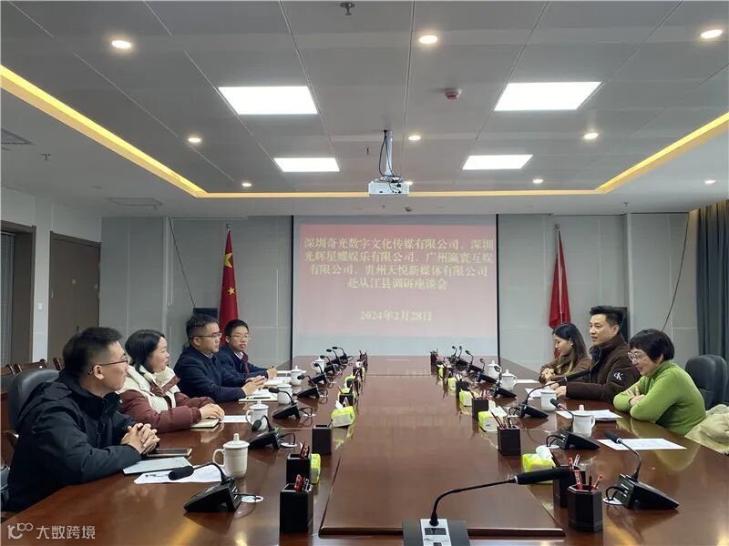 近日,深圳奇光数字文化传媒有限公司设计师张丁元、深圳光辉星耀娱乐有限公司总经理唐晓辉、广州瀛寰互娱有限公司总经理卢一瑶、贵州天悦新媒体有限公司执行总经理李亦敏一行到从江调研座谈。县委常委、县政府常务副县长、贵州侗乡大健康产业示范区(贵州洛贯经济开发区)党工委副书记、管委会副主任龙稳全,示范区(开发区)党工委委员、管委会副主任张米良,县工信和商务局、县电商和物流发展专班负责同志参加。