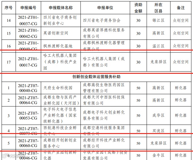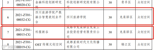 近日,成都市科技局发布了2022年成都市创新创业载体创建、运营服务补助拟立项项目的公示名单,我区四川旅游学院产教融合智创平台、科服新谷、哈工大、经开孵化园和启迪之星5家载体拟获创新创业载体创建及创新创业载体运营服务两项补助共计125万元。