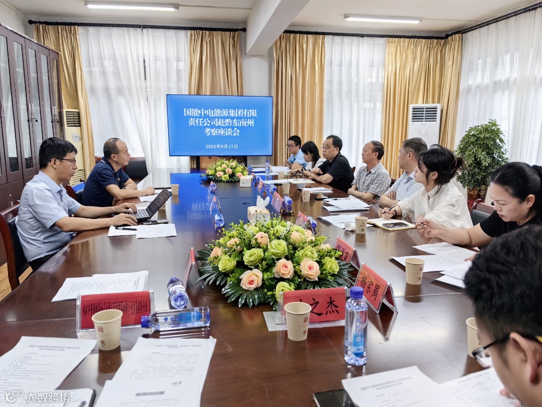 17日上午,考察团一行参加了黔东南州与国能中电能源集团有限责任公司座谈会。会上,初炜总裁介绍了公司的发展情况和三大业务板块以及拟合作的项目基本情况,双方就相关合作进行了深入交流。