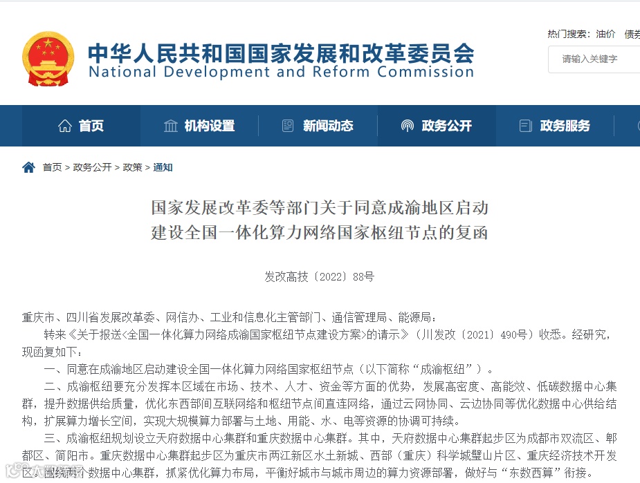 日前,国家发改委等四部门复函同意粤港澳大湾区、成渝地区、长三角地区、京津冀地区启动建设全国一体化算力网络国家枢纽节点。