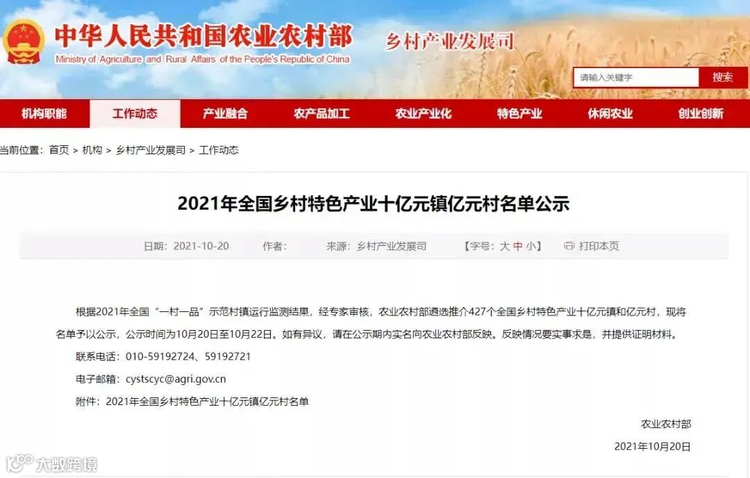 日前,农业农村部发布了“2021年全国乡村特色产业十亿元镇亿元村名单”。