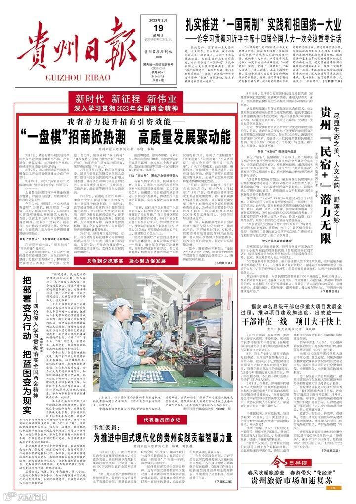 今年以来,贵州以“产业大招商突破年”为契机,树立招商“一盘棋”思想,创新招商方式,以持续优化营商环境推动发展质效大跃升。当前,全省上下正深入学习贯彻全国两会精神,动起来、快起来、跑起来,奋力掀起招商引资热潮,全力突破、全速推进,助力贵州经济高质量发展行稳致远。