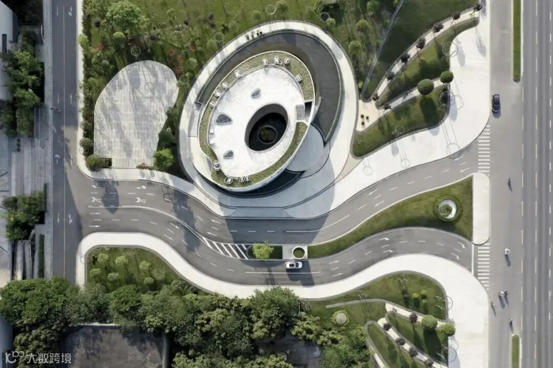 蜿蜒的车道设计,缓和了车行速,转换成轻松闲适的入园心情,景观配置提取水纹的流动感,重塑自然气氛