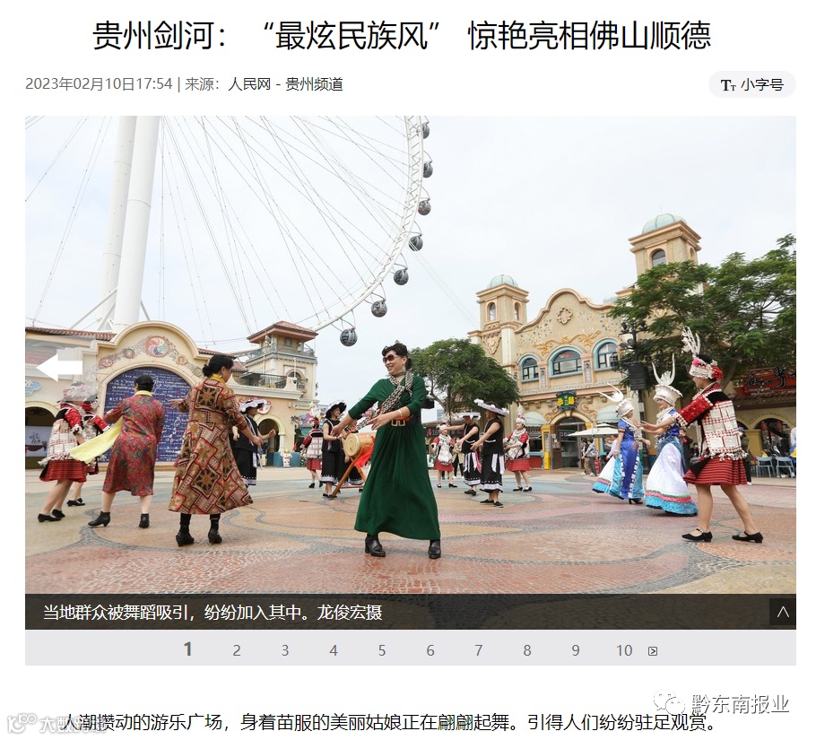为了给推介会“预热”,2月9日,剑河县仰阿莎民族歌舞艺术团在广东省佛山市顺德区欢乐海岸PLUS游乐园的广场上,开展民族文化展演活动,现场发放剑河旅游宣传折页等资料,还进行现场有奖互动竞猜,引来大批游客围观驻足,并参与互动。当天由本次活动外出人员组成3个小分队,分别前往顺德区政府、大湾区商协会、大湾区涉旅重点企业等进行系列拜访考察活动,进一步加深交流和合作意向。