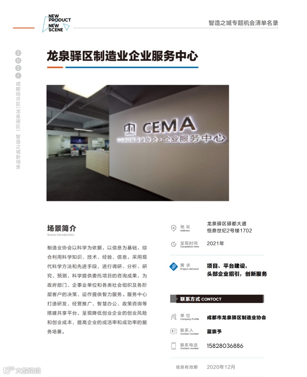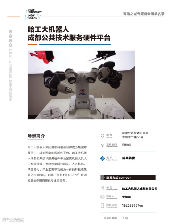 2021成都经开区(龙泉驿区)新经济生态合作大会“智造之城”专题机会清单名录