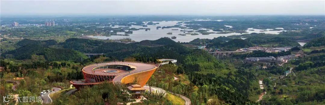 网红打卡地丹景台外观呈金属质感的橙色,整体建筑螺旋向上,从空中俯瞰,好似一只眼睛。站在丹景台极目远眺,看到的是龙泉山城市森林公园山水各色辉映,是三岔湖镶嵌在绿意盎然的广袤土地,是正在火热建设中的天府国际机场……丹景台作为城市新名片,在热播节目中,展示了成都的新面貌。
