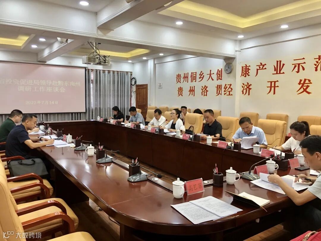 7月14日至15日,省投资促进局副局长谢强一行到黔东南州就贯彻落实新国发2号文件和省人民政府关于支持黔东南州“黎从榕”打造对接融入粤港澳大湾区“桥头堡”实施意见,推动低效闲置旅游资产盘活及央企招商、民企招商等工作开展调研。州人民政府副州长王建华,州人民政府副秘书长彭勤,州投资促进局局长范爱红及黎平、从江、榕江县相关负责同志陪同调研并参加座谈。