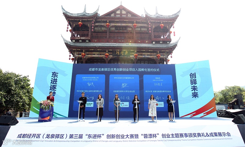 3月27日,由龙泉驿区委组织部、区人社局、区新经济和科技局、区退役军人事务局和团区委联合主办的第三届“东进杯”创新创业大赛暨“蓉漂杯”创业主题赛事颁奖典礼&成果展示会在洛带古镇五凤广场隆重举行。龙泉驿区政府副区长杜凌艳,成都市人才工作领导小组办公室、市就业局、市科技局、市退役军人事务局、团市委等市级部门领导共同出席活动。