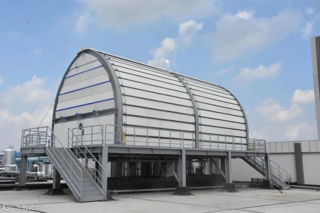 在轻型车测试中心的楼顶,安放了一个大型的光化学烟雾箱系统,配备了当前国际上最先进的高分辨率实时在线分析系统,这是目前国内最大的光化学烟雾箱系统。“在接近实际大气条件下开展针对机动车排放活性气态污染物的降解转化和二次生成的系列研究,模拟不同污染环境下典型VOCs的大气氧化过程,验证和发展现有的大气化学反应机理和模式,为实现区域和城市大气污染精细化防治、细颗粒物(PM2.5)和臭氧(O₃)污染协同控制提供重要的理论基础和解决方案。”
