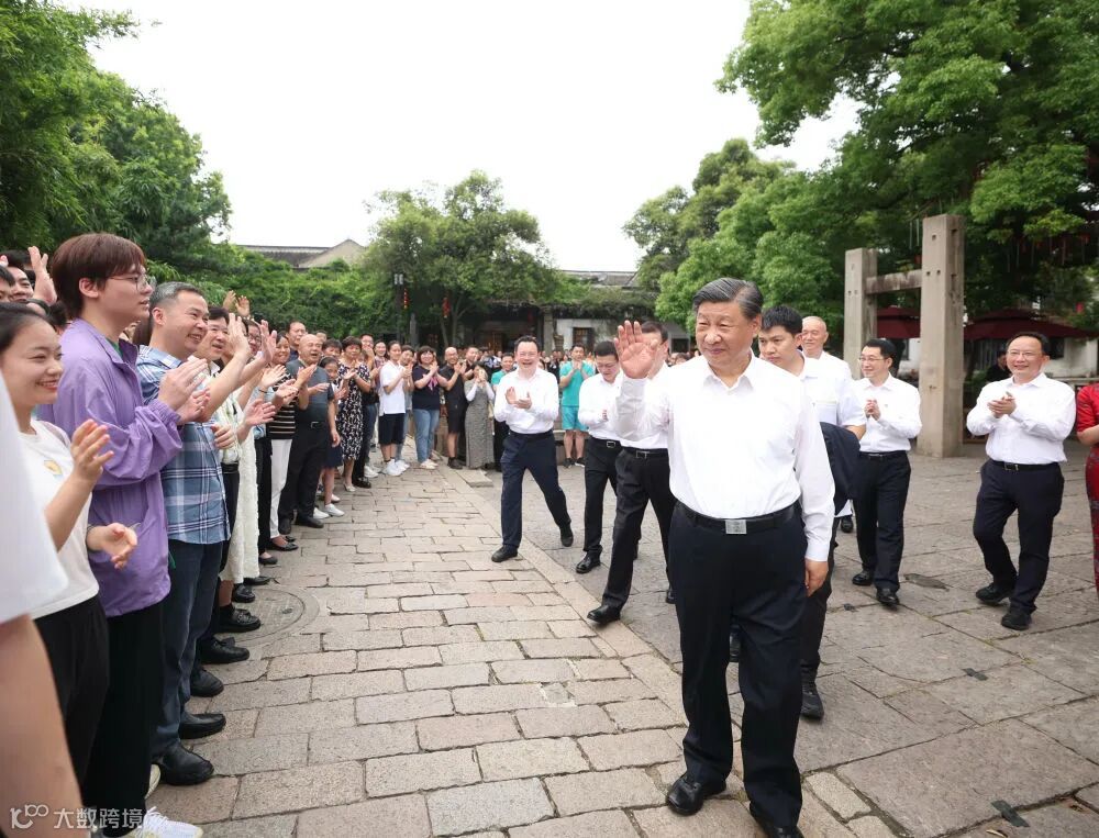 7月5日至7日,中共中央总书记、国家主席、中央军委主席习近平在江苏考察。这是6日下午,习近平在南京市考察南瑞集团有限公司时,同年轻研发人员亲切交流。新华社记者 鞠鹏 摄