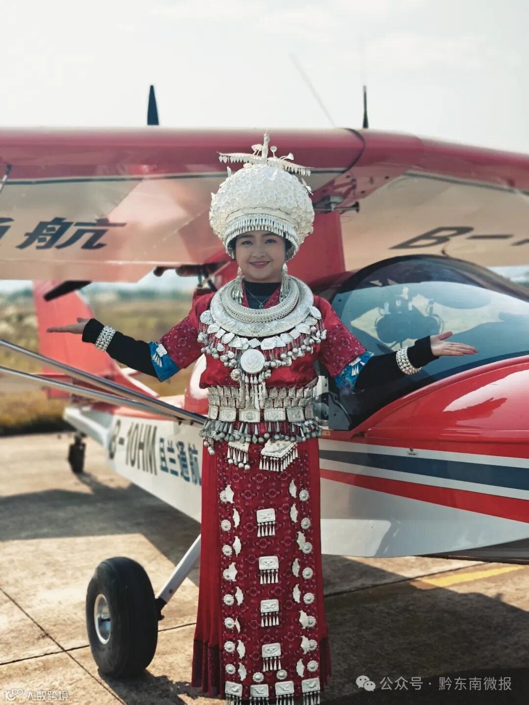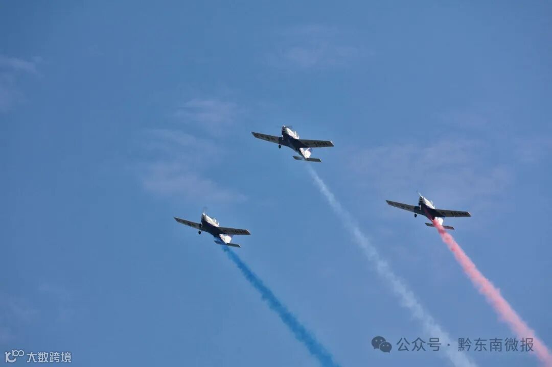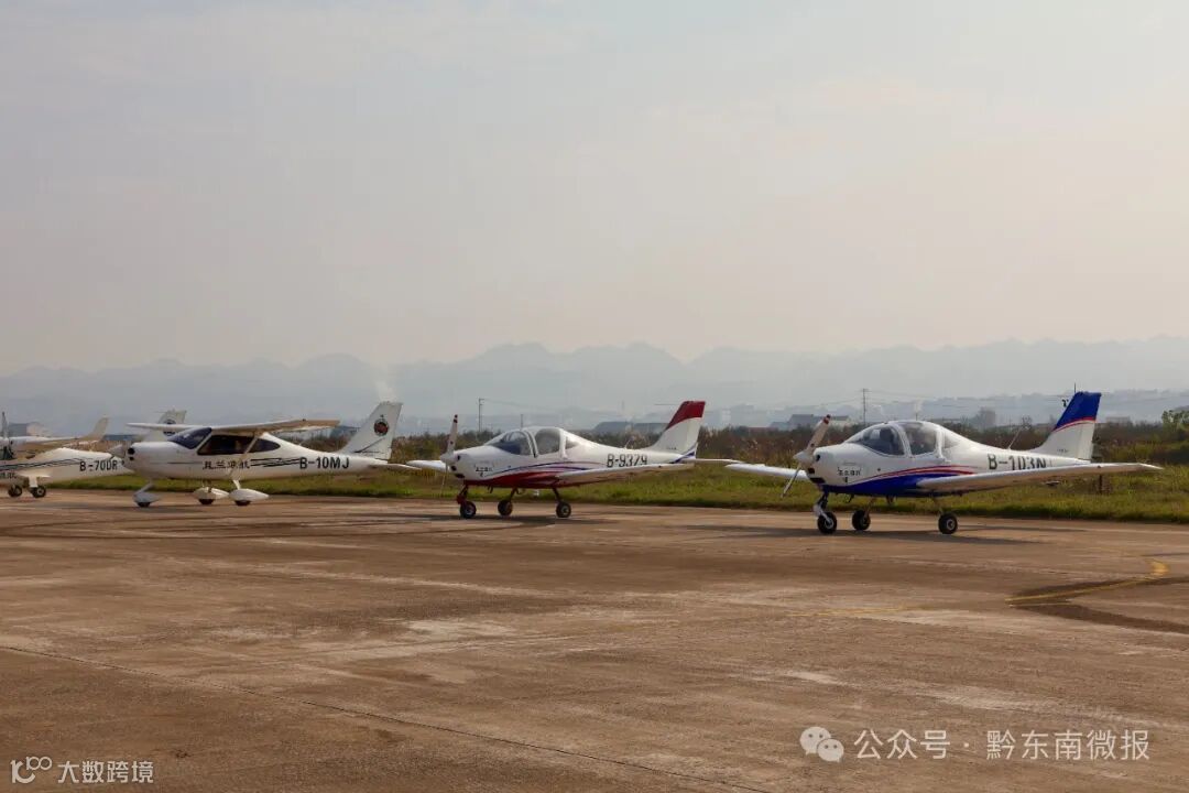 在首飞仪式上,现场的嘉宾和游客共同见证了这一时刻。由黄平县且兰通航主导的三机编队低空飞行秀在黄平旧州机场震撼起飞,随后,三架飞机经过黄平、凯里、雷山、西江千户苗寨上空展翅翱翔。从空中俯瞰,所经之处的景区山水与现代的城市风貌相互交融,展现出了黔东南“景景串飞”的独特魅力。