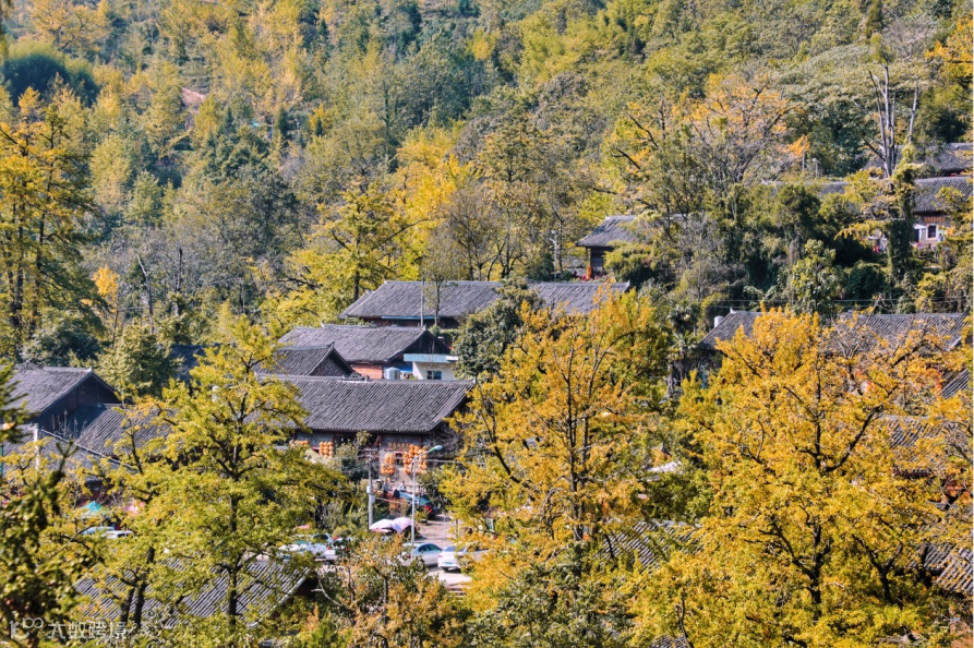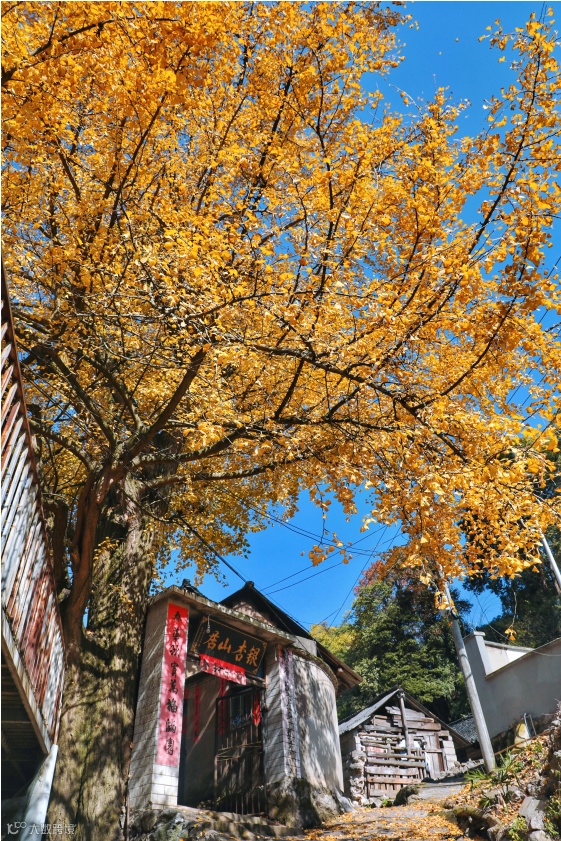 见到妥乐村的那一刻,才明白什么是坠入金黄的世界。整个村庄被银杏叶染成了梦幻的金黄色,石头路上、青瓦屋顶上、小桥上、清澈如练的小溪里......到处有它的身影。
