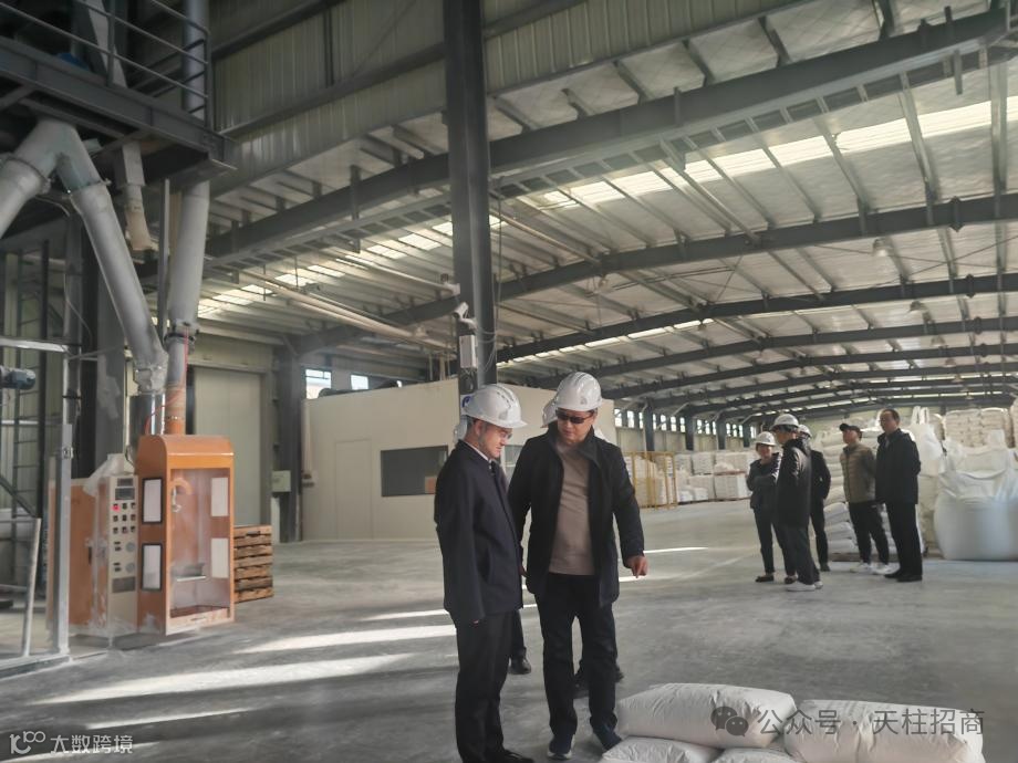 赵明波一行走进企业生产基地,实地考察参观了江苏群鑫粉体科技股份有限公司工厂生产情况,全面了解产品生产过程及工艺。