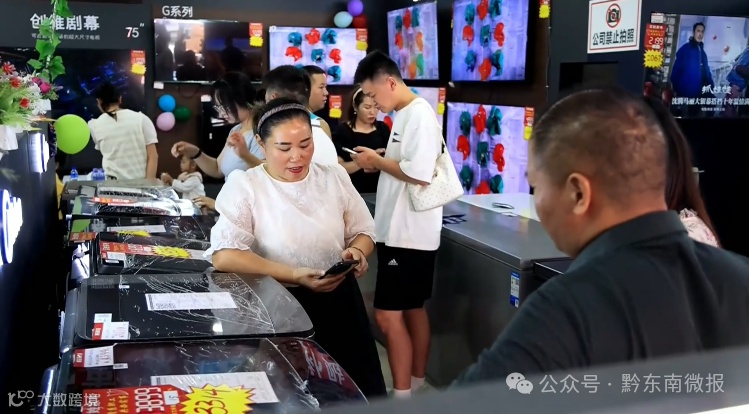 据了解,在贵州省内参加消费品以旧换新活动的消费者,还可叠加享受我省推出的酒车、酒商联动促销政策,2024年优质酱酒联动促消费活动将持续至2025年3月。位于凯里市大十字的一家家电场,顾客进店量明显增多,销售人员李玲说:“家电单品最高补贴是2000元,一般的一级能效的产品都是补贴20%,也就是打八折,所以力度比较大,这个也是吸引顾客进店购买的主要原因。”