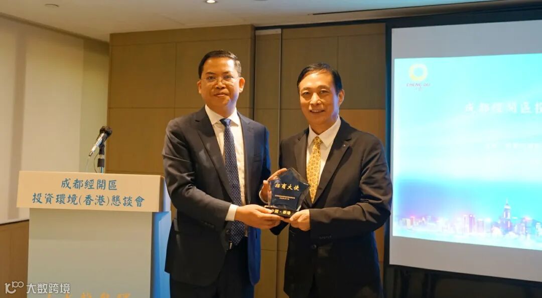 活动期间,成都经开区向香港四川总商会执行会长、香港亚旅卫视董事局主席黄冬,柏年基金会有限公司首席投资官王佑生颁发了聘书,聘任2位嘉宾担任成都经开区招商大使。