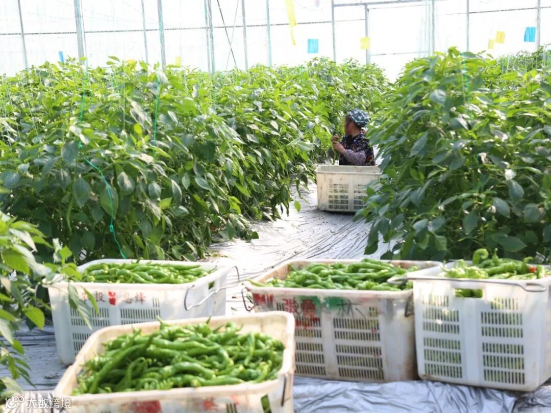 车江大坝大棚内的辣椒成熟,工人采收忙